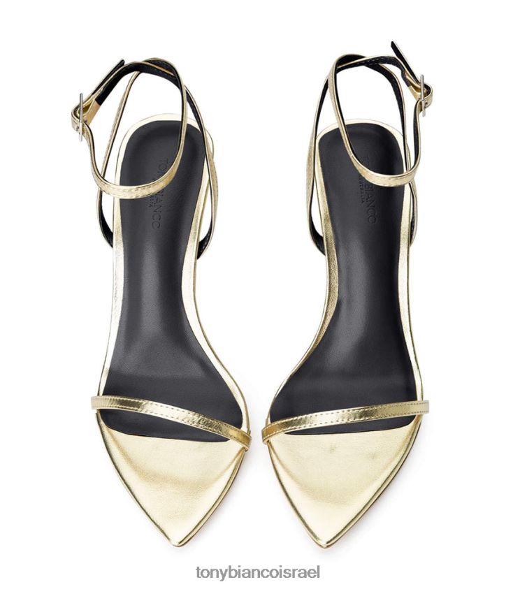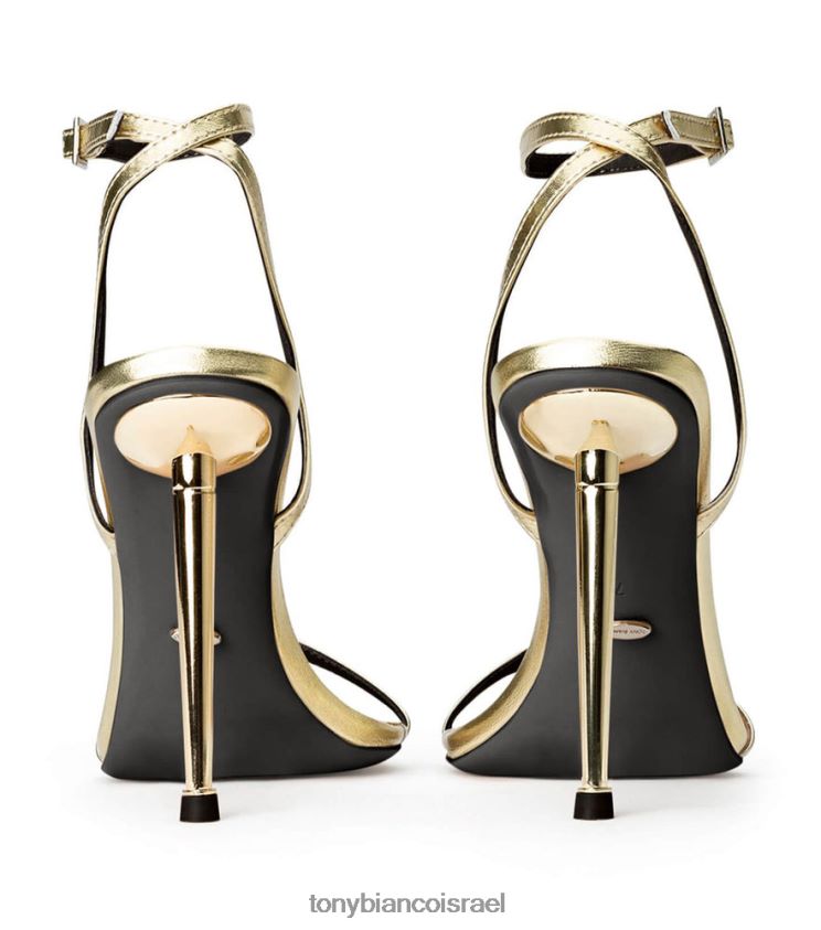 הצהרה בעקבים המדהימים של myra. מעוצבים לסובב ראשים עם עקב סטילטו ממתכת יוקרתי, בשילוב עם חלק עליון ורצועת קרסול מעור זהב, הם טוויסט נועז לקלאסי.