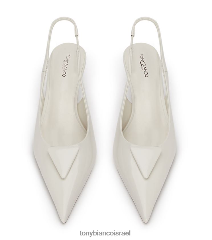 מקרין קסם וינטג' זה העקב הנמוך והנמוך הזה כולל אצבע מחודדת אלגנטית ומוארכת ופרטי לוח משולשים. העיצוב המינימליסטי של קימי יוצר צללית קלאסית. עשוי עם העור הלבן היי זוהר הייחודי שלנו לסגנון ותחכום אולטימטיביים.