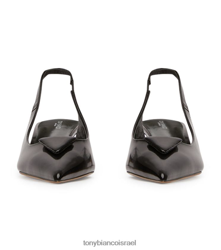 מקרין קסם וינטג' זה העקב הנמוך והנמוך הזה כולל אצבע מחודדת אלגנטית ומוארכת ופרטי לוח משולשים. העיצוב המינימליסטי של קימי יוצר צללית קלאסית. עשוי עם עור היי זוהר השחור הייחודי שלנו לסגנון ותחכום אולטימטיביים.